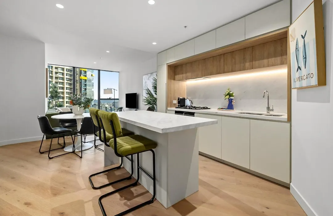 Para tu comodidad, el apartamento Skyline And Sea Luxe Heated Pool Gym Sauna Steam dispone de una cocina bien equipada con lavaplatos, tetera y nevera. Los huéspedes también pueden tomar un autobús en la estación de autobuses King St/Lonsdale St, situada a tan solo 10 minutos a pie, para explorar Melburne.